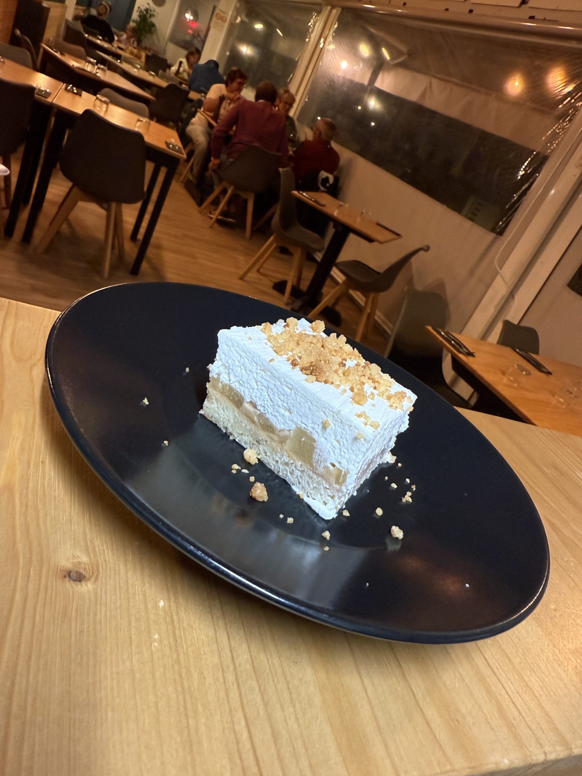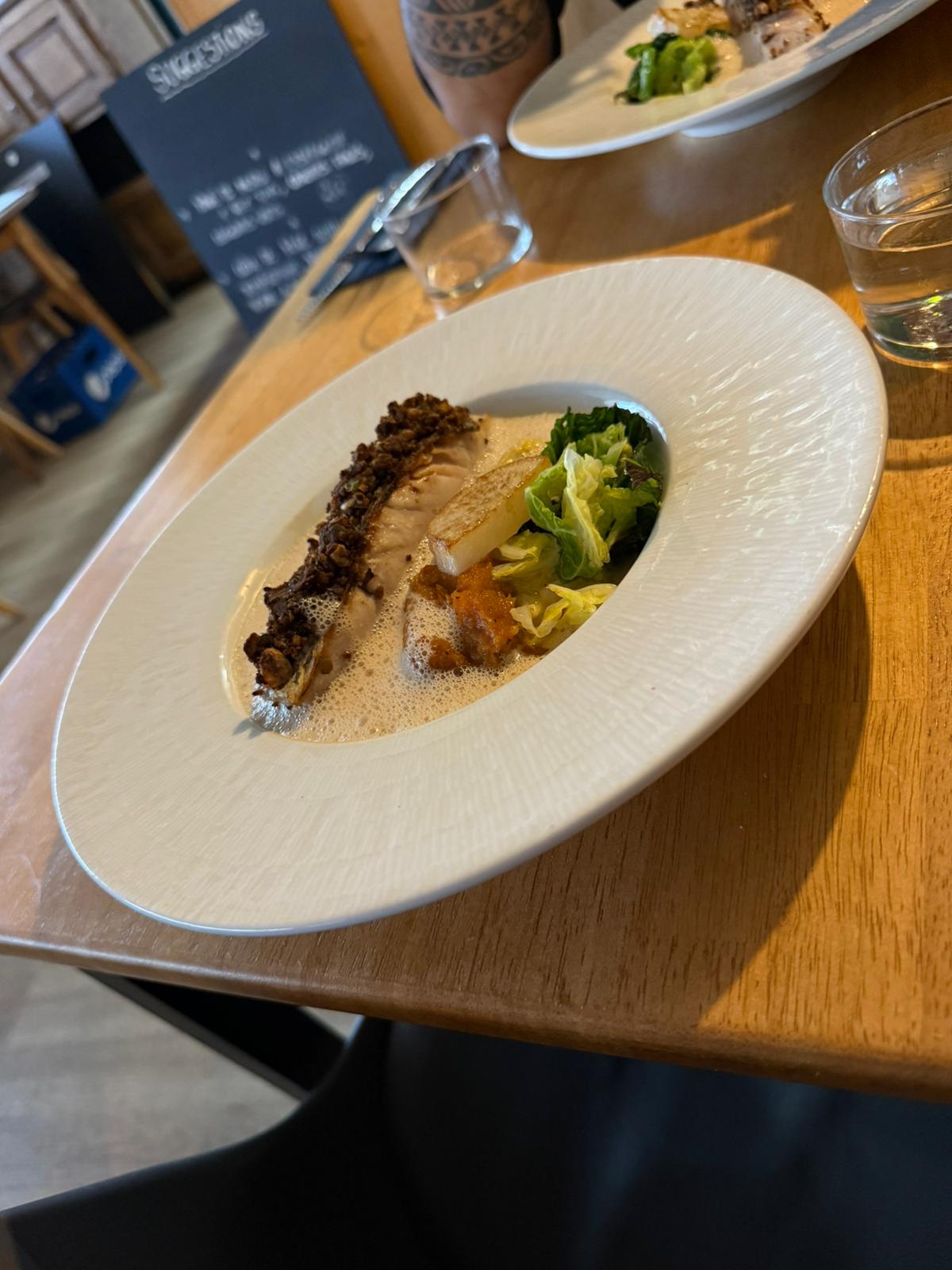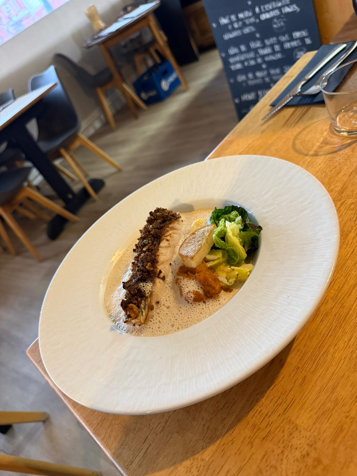 Gros coup de cœur pour la croquette à l’encre de seiche, aussi surprenante que délicieuse — une vraie découverte ! Le plat signature était succulent, accompagné d’une polenta à tomber par terre. Le thon, parfaitement cuit, fondait en bouche. Et pour finir en beauté : une crème brûlée simple, sans chichi, mais juste trop bonne. Comme quoi, la simplicité bien faite, ça marche à tous les coups !