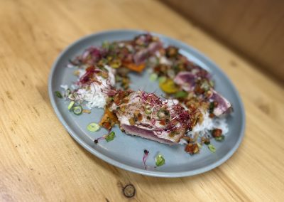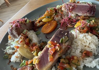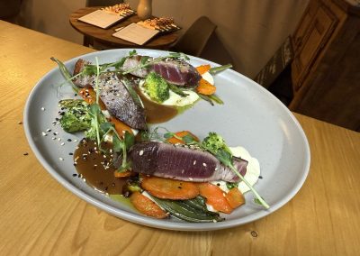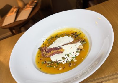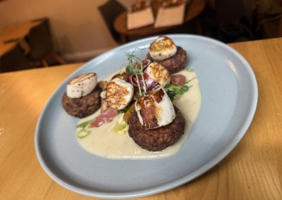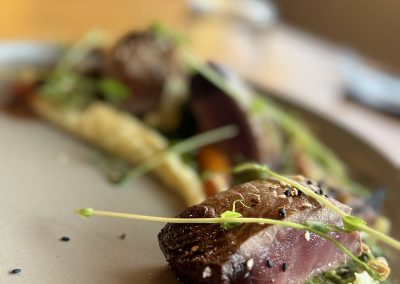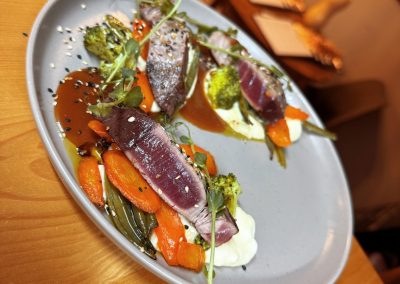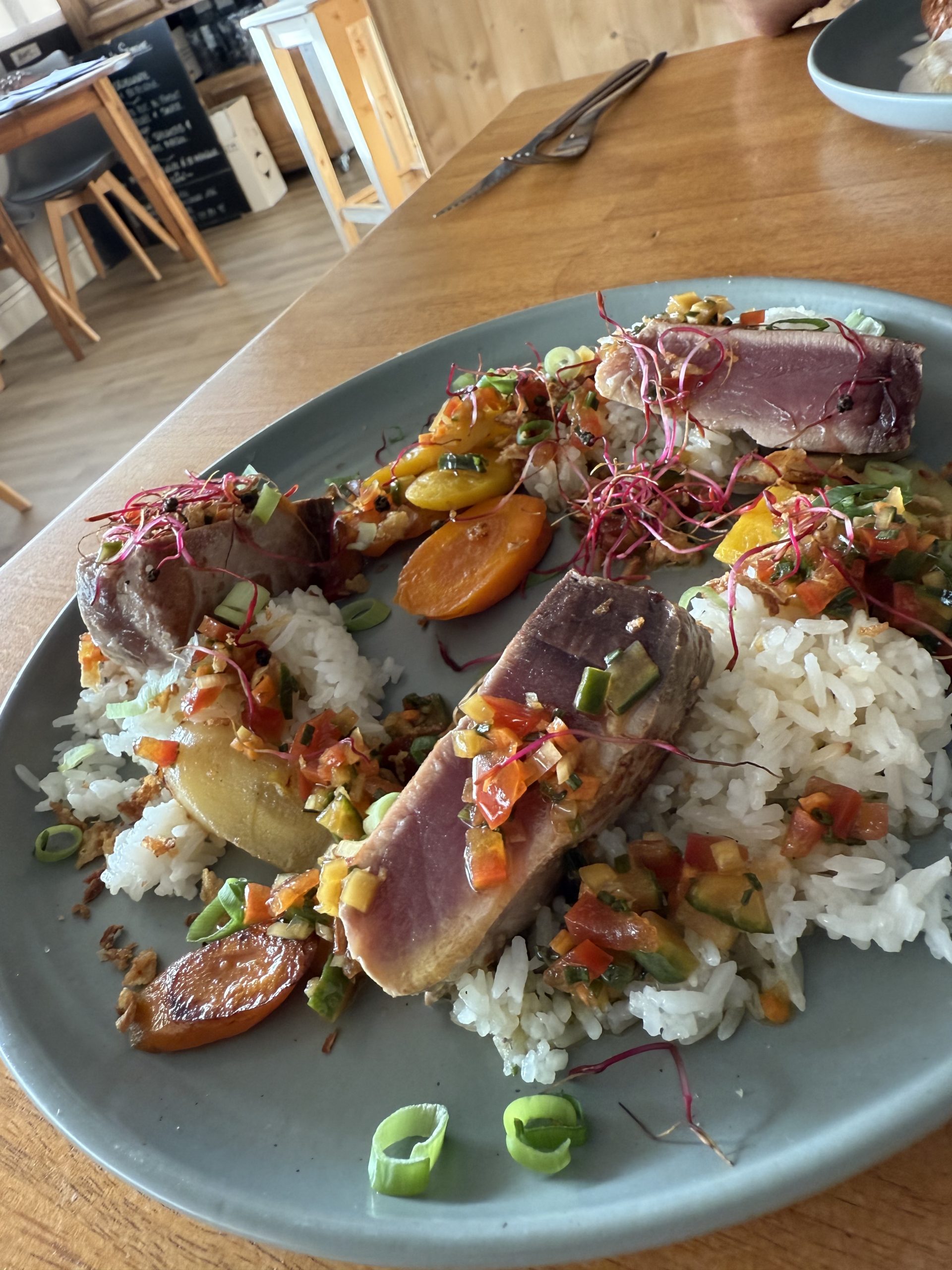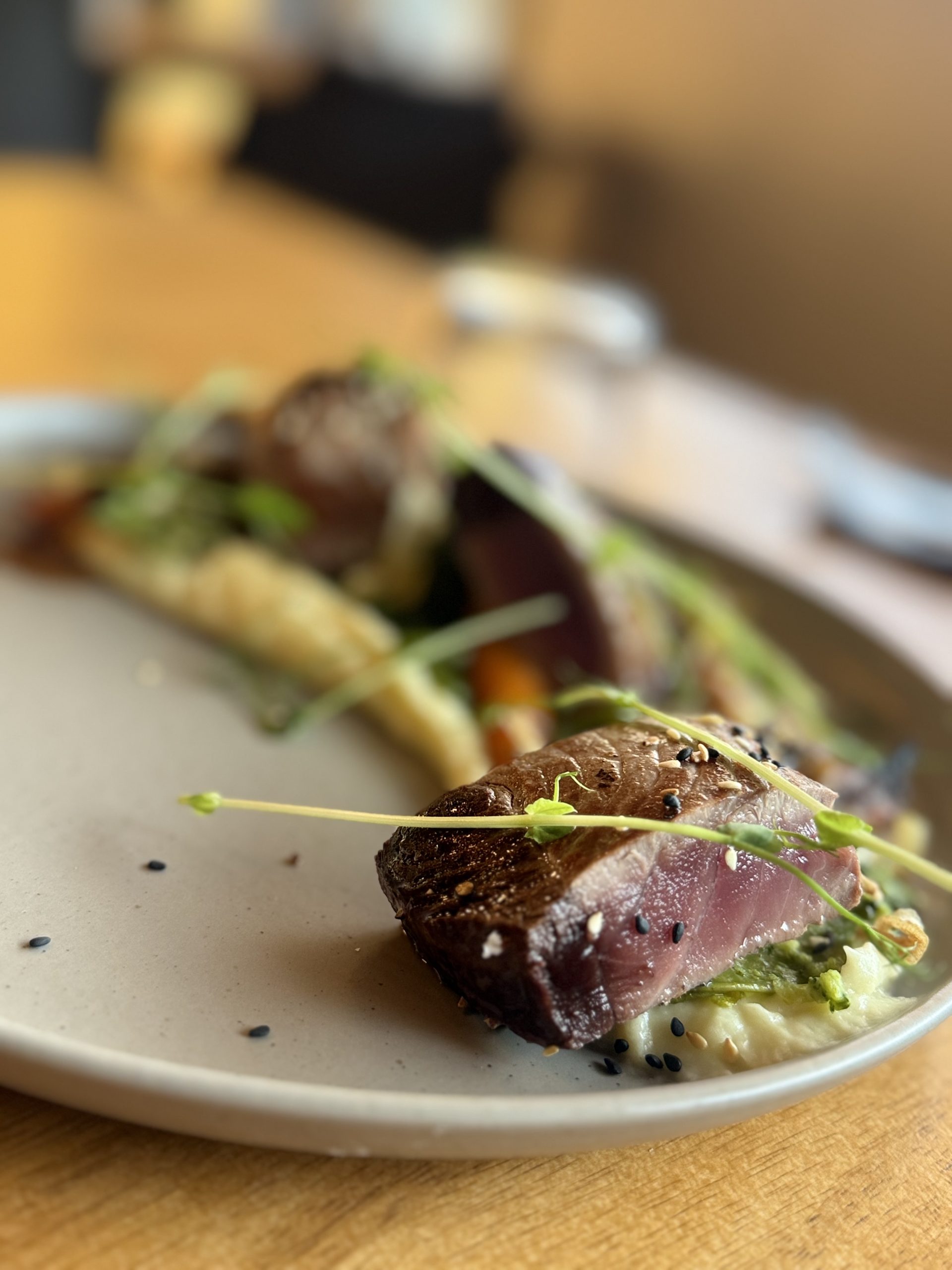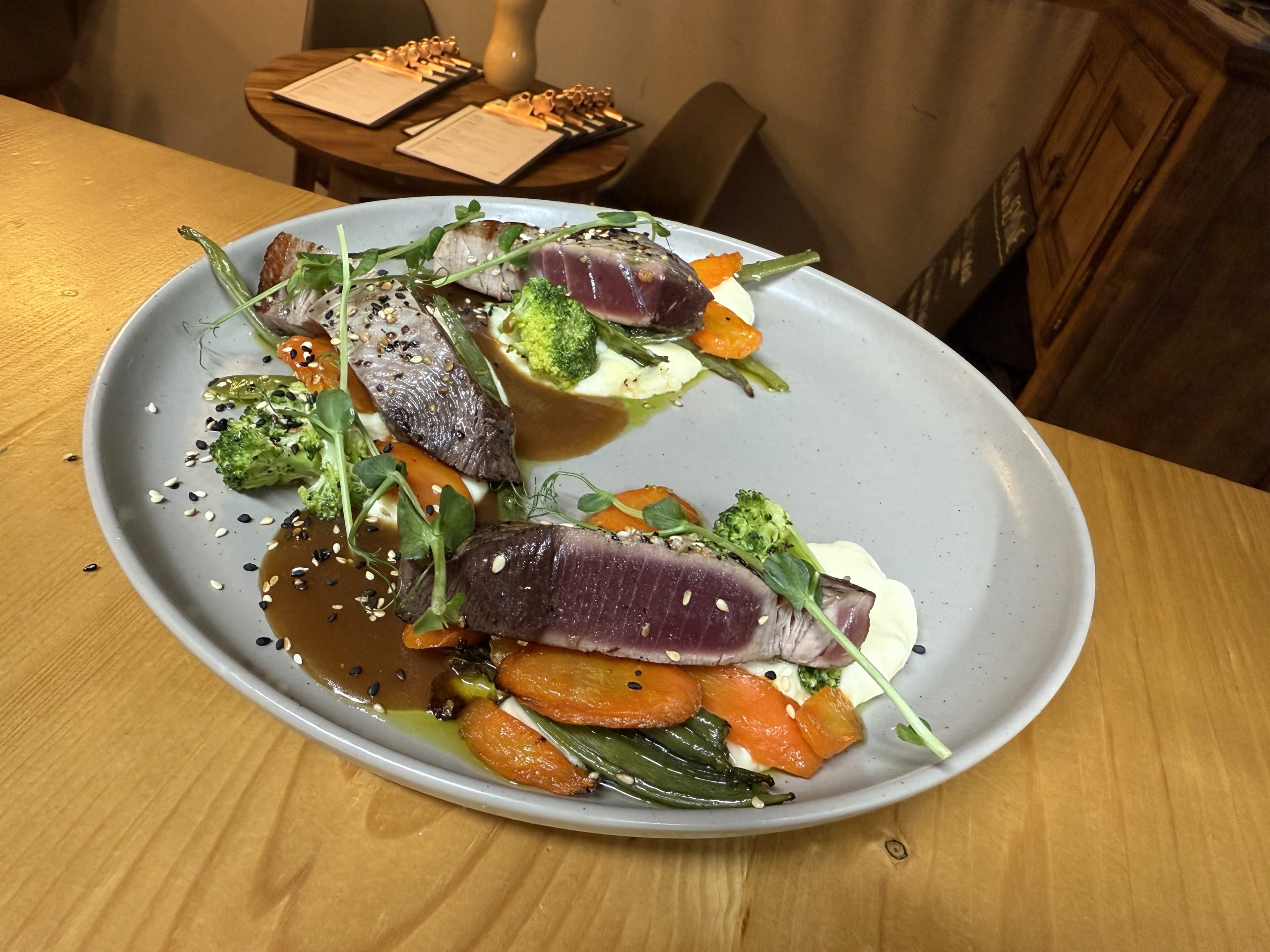 Gros coup de cœur pour la croquette à l’encre de seiche, aussi surprenante que délicieuse — une vraie découverte ! Le plat signature était succulent, accompagné d’une polenta à tomber par terre. Le thon, parfaitement cuit, fondait en bouche. Et pour finir en beauté : une crème brûlée simple, sans chichi, mais juste trop bonne. Comme quoi, la simplicité bien faite, ça marche à tous les coups !