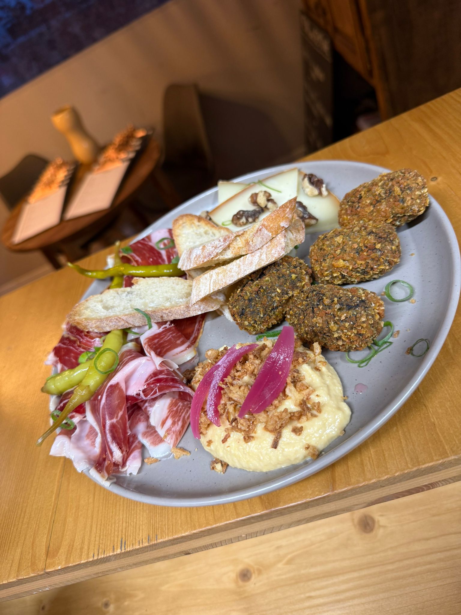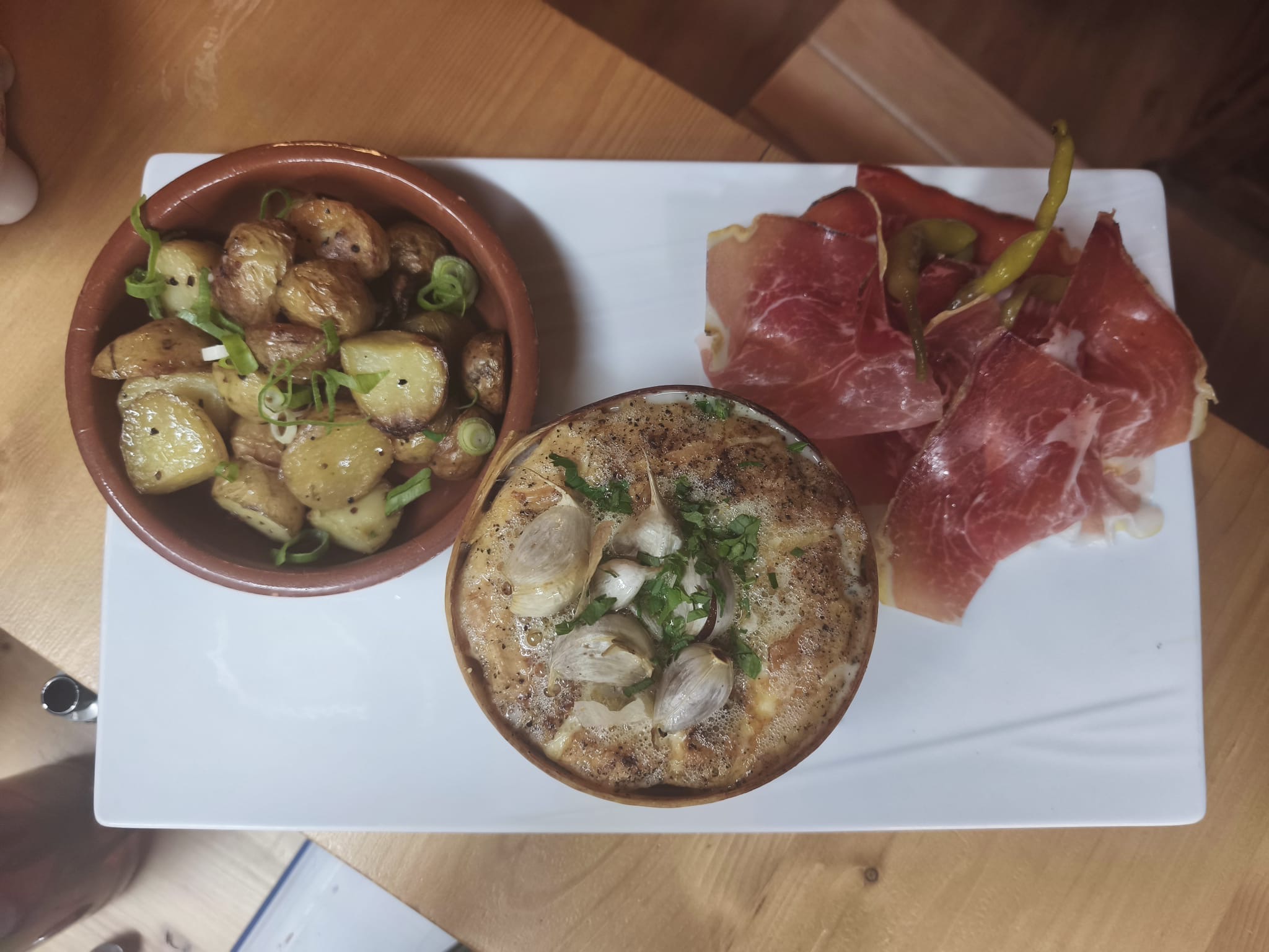 Mention spéciale aux croquettes à l'encre de seiche glissées dans l'assiette de tapas que je recommande vivement de goûter !!!