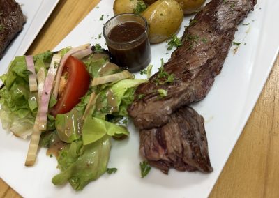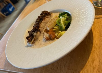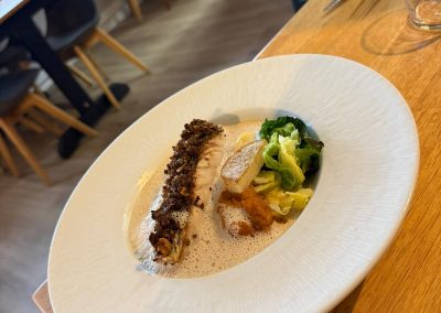 Le menu reflète parfaitement la richesse de la région : poissons, viandes et autres spécialités locales, il y en a pour tous les goûts. C’est une cuisine sincère, généreuse, où chaque plat raconte l’amour du métier. Le cadre, calme et agréable, ajoute à l’expérience.